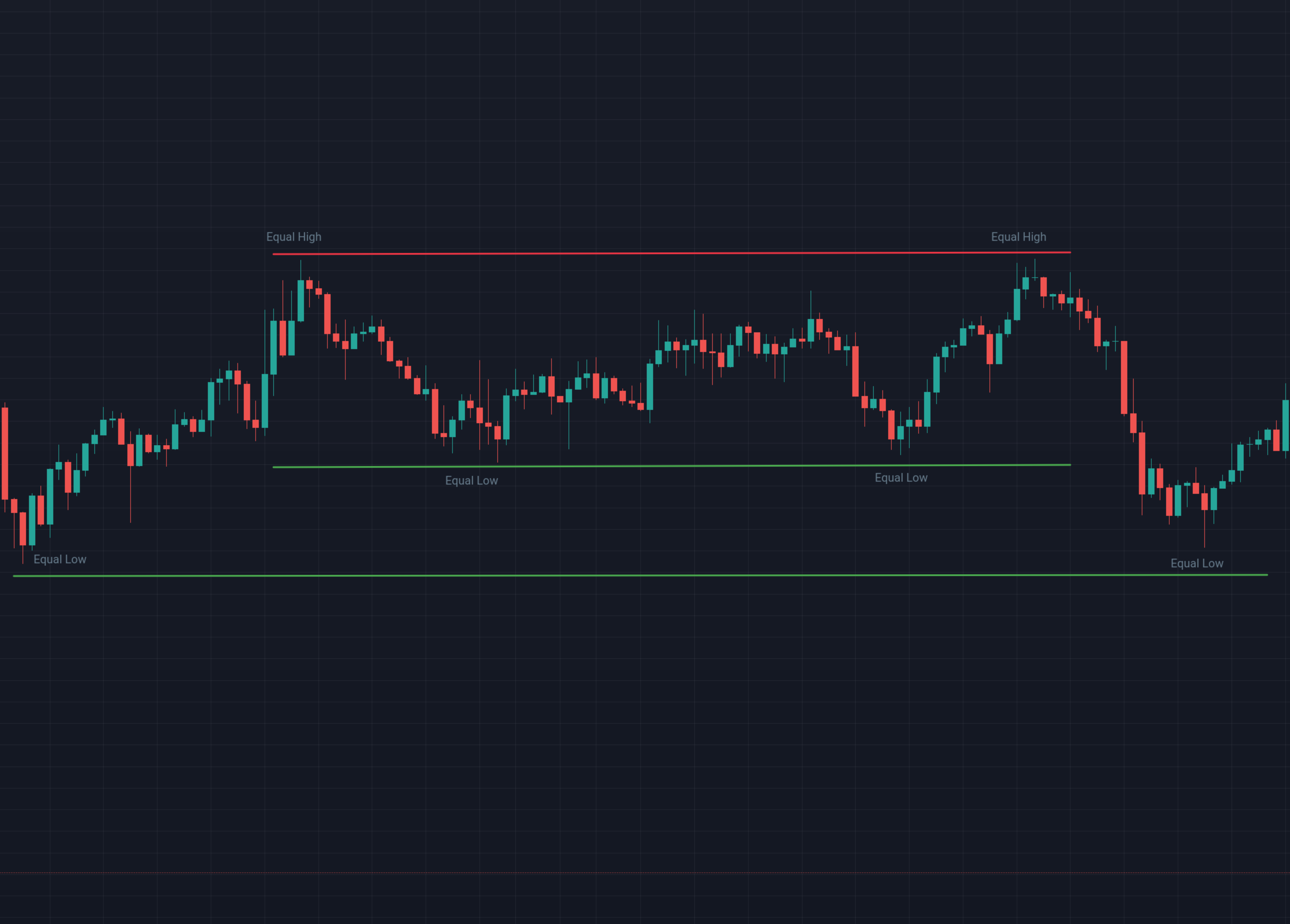 Example: equal highs at the top of a range. Liquidity builds as breakout traders place buy stops above, while short traders place stop-losses there. Institutions often sweep this external liquidity before reversing.