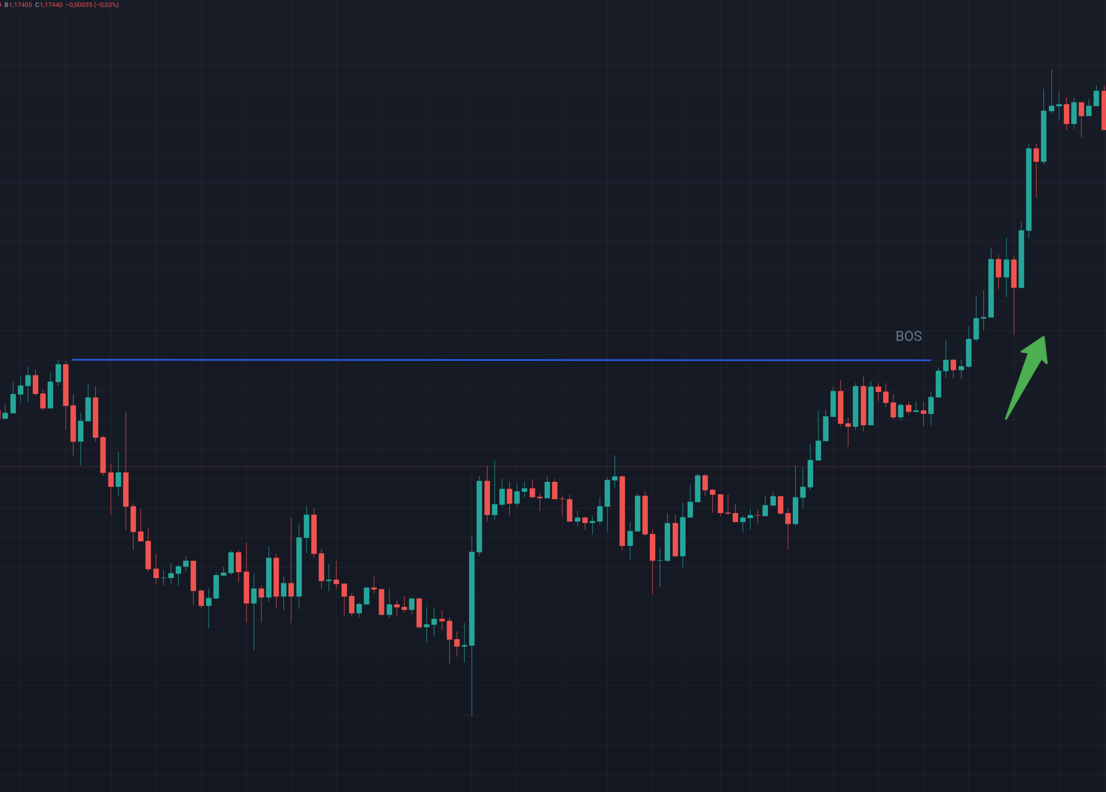 - Break of Structure (BOS): confirms the continuation of the current trend.