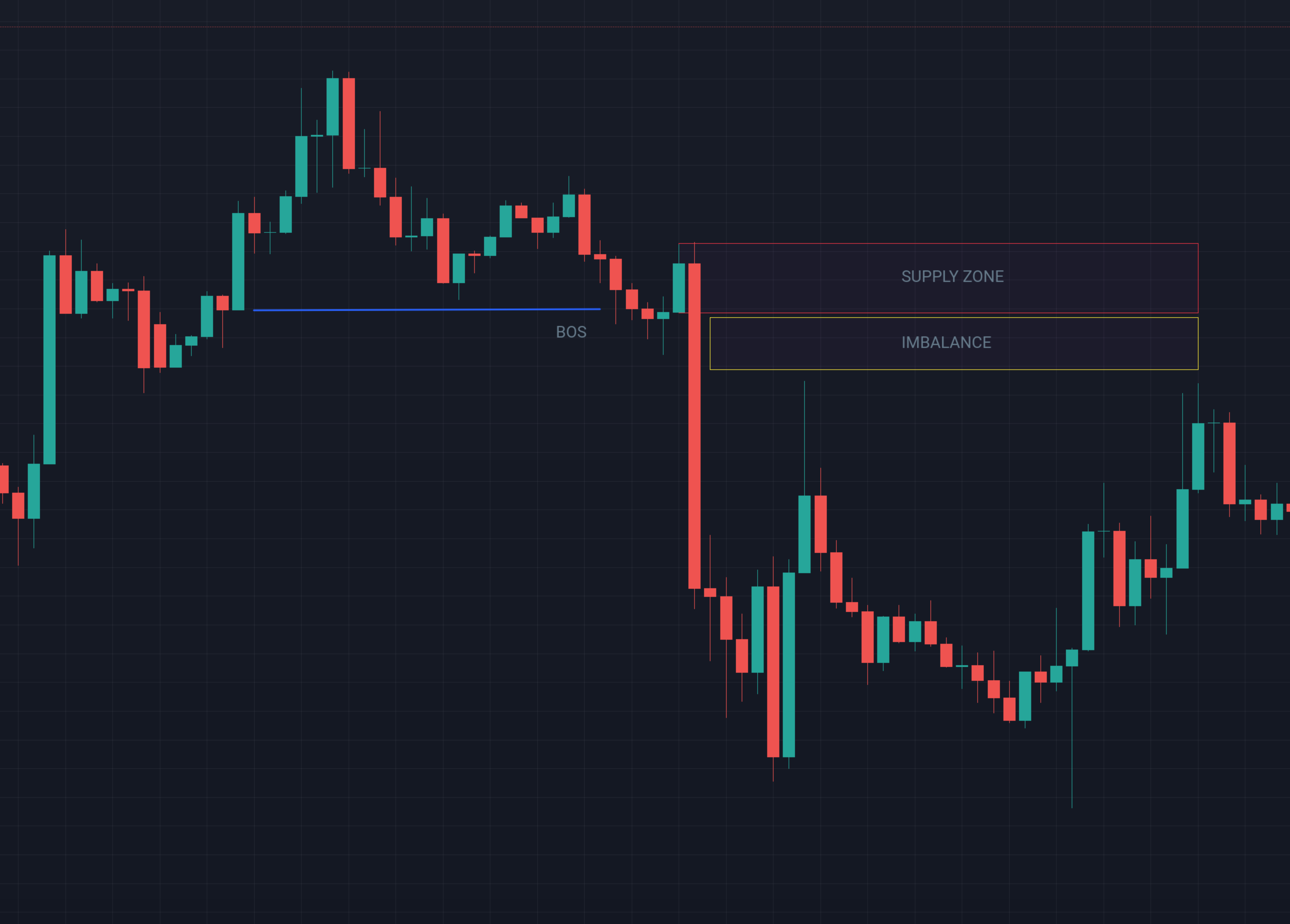 - Supply zone: an area where price dropped aggressively (more sellers than buyers -> imbalance).